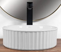 Prezentujemy Państwu umywalkę nablatową, która zapewni Państwa łazience nowoczesny wygląd i wysoką funkcjonalność. Umywalka wykonana jest z wysokiej jakości ceramiki sanitarnej. Powierzchnia zewnętrzna jest ryflowana, tworząc interesujący efekt wizualny nadający łazience niepowtarzalny charakter.