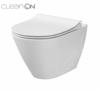 Miska zawieszana z innowacyjną technologią Clean On, dzięki której toaleta pozostaje bardziej czysta i bezpieczna na dłużej.