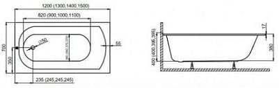 CLASSIC SLIM Wanna prostokątna 130x70cm , wys.rantu 1,7 cm