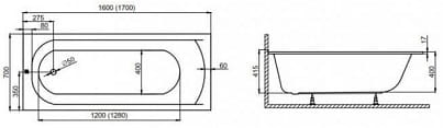 CLASSIC SLIM Wanna prostokątna 160x70cm , wys.rantu 1,7 cm
