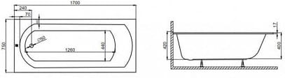 CLASSIC SLIM Wanna prostokątna 170x75cm , wys.rantu 1,7 cm