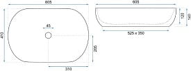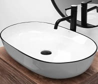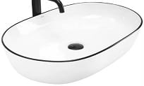 CLEO WHITE BLACK EDGE Umywalka nablatowa 61x41 cm , biała z czarnym rantem
