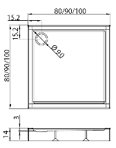New Trendy Columbus brodzik zintegrowany , kwadratowy 90 x 90 x 14 cm na stelażu