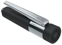 Czarny pistolet z regulacją strumienia i antyosadową końcówką z wypustkami.