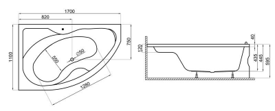 DORA Wanna narożna asymetryczna P 170x110 cm