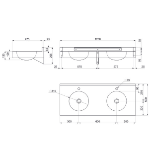 Umywalka ścienna, 2 stanowiska
