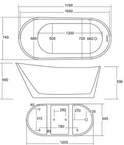 ESTELLA Wanna wolnostojąca 170x74 cm z wykończeniem czarnym