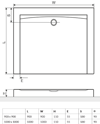 - Średnica odpływu: 90 mm