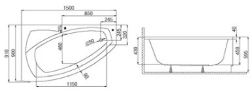 FRIDA 1 Wanna narożna asymetryczna L 150x90 cm