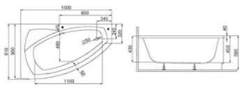 FRIDA 1 Wanna narożna asymetryczna P 150x90 cm
