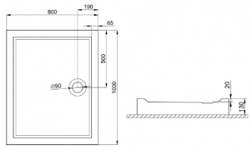 GOLIAT Brodzik akrylowy prostokątny posadzkowy 100x80x3 cm