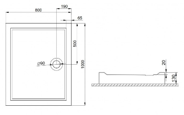 GOLIAT Brodzik akrylowy prostokątny posadzkowy 100x90x3 cm