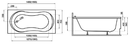 GRACJA Wanna prostokątna 150x70 cm