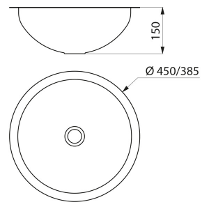 Średnica wewnętrzna umywalki: 385 mm.
