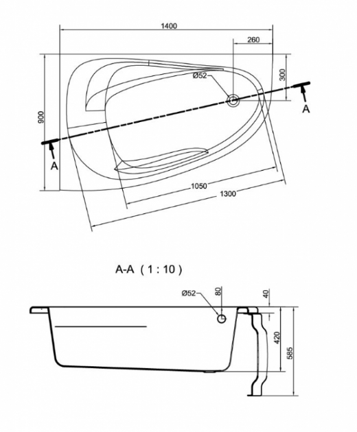 JOANNA NEW Wanna asymetryczna 140 cm lewa