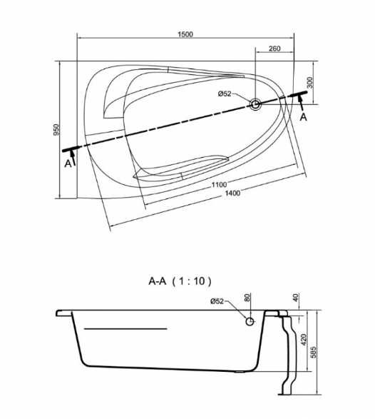 JOANNA NEW Wanna asymetryczna 150 cm lewa