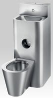 WC jest całkowicie przyspawane do umywalki, brak śrub: ułatwia czyszczenie i zapobiega ukrywaniu przedmiotów.