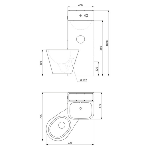 WC jest całkowicie przyspawane do umywalki, brak śrub:ułatwia czyszczenie i zapobiega ukrywaniu przedmiotów.