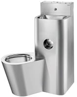 WC jest całkowicie przyspawane do umywalki, brak śrub: ułatwia czyszczenie i zapobiega ukrywaniu przedmiotów.
