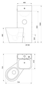 DELABIE KOMPACT Moduł zbiornik , umywalka i WC stojące z lewej strony , ścienny