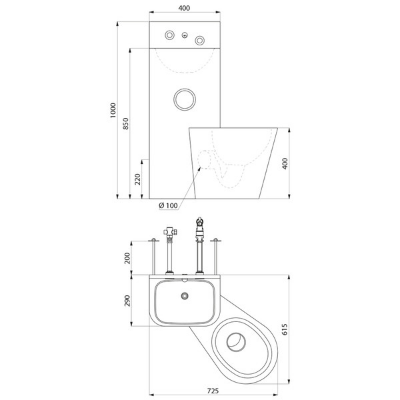Dopływ wody: umywalka Z½″, WC Z¾″.