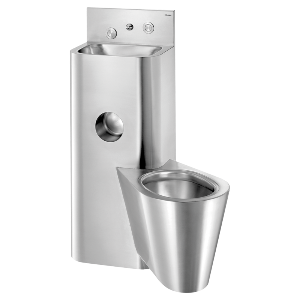 WC jest całkowicie przyspawane do umywalki, brak śrub:ułatwia czyszczenie i zapobiega ukrywaniu przedmiotów.