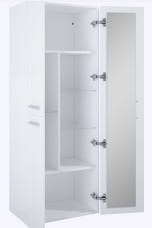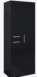 Słupek Kwadro Plus 60 cm w kolorze black. Słupek zaopatrzony jest w 5 półek z regulowaną wysokością. Ten funkcjonalny słupek z pionowym, wewnętrznym lustrem posiada 3 drzwi z szerokokątnymi zawiasami 165˚ i cichym domykiem. Front i korpus słupka składa się z płyty laminowanej, lakierowanej na wysoki połysk. Metalowe chromowane uchwyty są wygodne w użyciu. Istnieje możliwość dokupienia uchwytów w kolorze białym, czarnym i złotym.