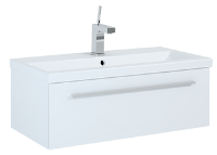 Szafka podumywalkowa Kwadro Plus 80 cm w kolorze białym. Szafka zaopatrzona w 1 szufladę z funkcją cichego samodomyku oraz z pełnym wysuwem. Wykonana jest z materiałów wysokiej jakości, odznacza się niebywałą solidnością. Front i korpus mebla składa się z płyty laminowanej. Metalowe chromowane uchwyty są wygodne w użyciu. Szuflada wyposażona w praktyczny oragnizer.
