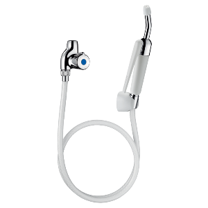 - pistolet HOSPITAL z drążkiem o odwrotnym funkcjonowaniu: wypływ po zwolnieniudrążka (zmusza do obowiązkowegozamknięcia zaworu odcinającego po użyciu,aby uniknąć ryzyka stałego trzymania wężapod ciśnieniem) z zagiętą końcówką 30° nadającą się do demontażu.