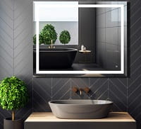 Szerokość podświetlenia to 2,5 cm, Oświetlenie LED lustra podnosi jego funkcjonalność, efektywność oraz spełnia walory dekoracyjne w łazience. Lustro z włącznikiem dotykowym - uruchamia oświetlenie lustra za jednym dotknięciem palca. Wyróżnia się nowoczesnym kształtem w postaci zarysu obrączki o błękitnej barwie, w trybie pracy zmienia barwę na białą. Włącznik pod napięciem jest cały czas w funkcji czuwania, posiada własne podświetlenie LED dzięki czemu bez problemu zlokalizujesz go w ciemnym pomieszczeniu. Wyłączenie funkcji czuwania – niebieskiego podświetlenia włącznika odbywa się poprzez chwilowe przytrzymanie palca na włączniku do momentu zgaśnięcia. Średnica włącznika to 1,5 cm.