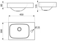 LAVANDO Umywalka do WC, 45x30 cm z otworem z prawej , stal nierdzewna