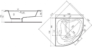 Wanna narożna Love o bokach 150/150, świetnie sprawdzi się w dużej jak i w mniejszej, kłopotliwej w urządzeniu łazience. Równej długości boki idealnie wkomponują się w przestrzeń nie zabierając zbyt wiele miejsca. Wanna wyposażona jest w przydatne uchwyty i wygodny podgłówek, a jej klasyczna, prosta obudowa pasować będzie do wielu wnętrz. Głębokość aż 2010 litrów daje możliwość zanurzenie całego ciała, a co za tym idzie - możliwość pełnego relaksu. Kształt serca sprawi z pewnością, że każda kąpiel we dwoje nabierze dodatkowego uroku. Zależnie od potrzeb, mogą zamówić ją Państwo w wersji z hydromasażem lub w wersji klasycznej.