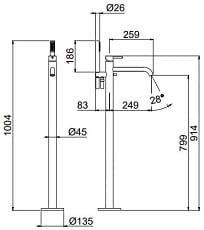 VEMA Maira Bateria wannowa wolnostojąca z przełącznikiem , wylewką oraz wężem z słuchawką prysznicową