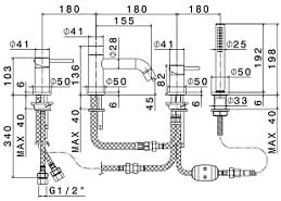Bateria , wylewka , przełącznik oraz wąż z słuchawką prysznicową .