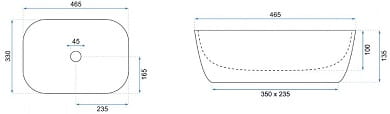 MARBEL Umywalka nablatowa 46,5x33 cm , biały