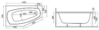 MARIKA Wanna narożna asymetryczna L 140x80 cm