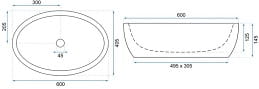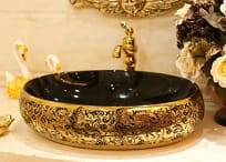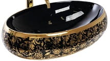 MERYL BLACK Umywalka nablatowa 60x40,5 cm , czarna/złota