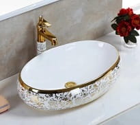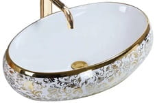 MERYL WHITE Umywalka nablatowa 60x40,5 cm , biała/złota