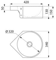 Wewnętrzna średnica umywalki: 320 mm.