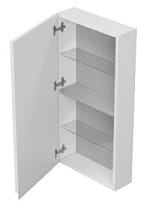 Szafka wisząca MODUO 40 przeznaczona jest na drobne akcesoria łazienkowe. Jej głębokość dopasowana jest do szafek lustrzanych i otwartego modułu tej kolekcji. Dzięki temu można tworzyć eleganckie zabudowy, tworzące jednolitą powierzchnię nad strefą umywalkową lub toaletową łazienki. Szafkę można łączyć w poziomie lub pionie. Wykonana jest z lakierowanej płyty meblowej. Drzwi szafki mają komfortowe frezowane uchwyty. Zaopatrzone są w system cichego domykania. Można je montować jako lewe lub prawe. Wewnątrz szafki znajdują się eleganckie szklane półki.