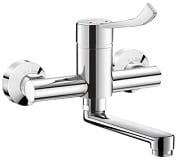 Bateria ścienna z płaską, ruchomą wylewką dolną L.150 wyposażoną w sitko higieniczne przystosowane do instalacji filtra BIOFIL.