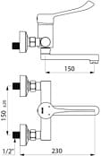 Mechaniczna Bateria ścienna do umywalki z regulatorem ciśnienia , L.150, uchwyt Higiena