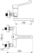 Mechaniczna Bateria ścienna do umywalki z regulatorem ciśnienia , L.150 , mimośrody standard