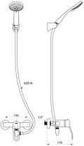 • Baterię z głowicą ceramiczną Ø40, nastawiony ogranicznik temperatury: