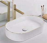 NADIA WHITE GOLD EDGE Umywalka nablatowa , 61x38,5 cm , biała/złota