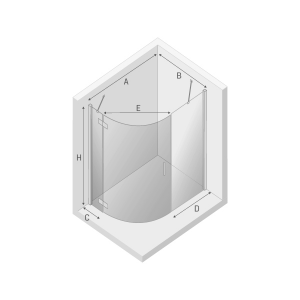 Kabina prysznicowa asymetryczna z pojedynczymi drzwiami uchylnymi na zewnątrz.Popularny asymetryczny kształt połączony z eleganckimi chromowanymi okuciami i pieczołowicie wypolerowanymi profilami doskonale sprawdzi się w każdym wnętrzu.