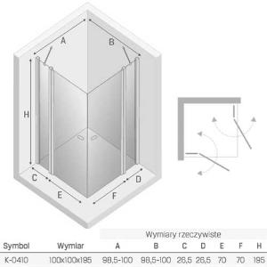 New Trendy New Soleo kabina prysznicowa kwadratowa z podwójnymi drzwiami uchylnymi otwieranymi na zewnątrz i do wewnątrz, 100x100x195 cm