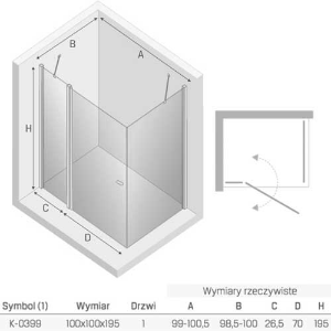 New Trendy New Soleo kabina prysznicowa kwadratowa z pojedynczymi drzwiami otwieranymi na zewnątrz i do wewnątrz 100x100x195 cm