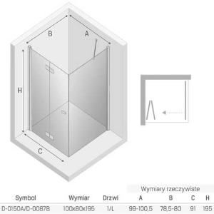 New Trendy New Soleo kabina prysznicowa prostokątna z pojedynczymi drzwiami składanymi, uchylnymi otwieranymi na zewnątrz i do wewnątrz 100x80x195 cm