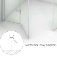 - Montaż z listwą progową lub bez - listwa progowa kabiny prysznicowej jest elementem pomocnym w zachowaniu lepszej szczelności, jednak jej montaż nie jest koniecznością. Decydując się na wariant montażu bez listwy należy zastosować dolną uszczelkę drzwi z przedłużonym listkiem, aby pomiędzy drzwiami a podłogą nie pozostała szczelina. Listwa progowa oraz dodatkowa uszczelka znajdują się w zestawie z pozostałymi częściami kabiny prysznicowej. Użytkownik ma możliwość jej montażu w każdej chwili bez konieczności podejmowania decyzji w momencie zakupu